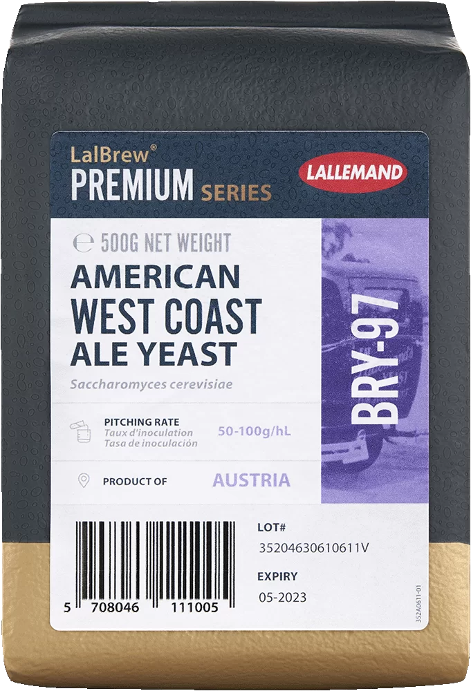 LalBrew BRY-97™ is an American West Coast-style ale yeast that was selected from the Siebel Institute Culture Collection for its ability to produce clean fermentations for high quality ales. LalBrew BRY-97™ is a neutral and highly attenuating strain with a high flocculation ability that can be used to make a wide variety of American-style beers. Through expression of a β-glucosidase enzyme, LalBrew BRY-97™ can promote hop biotransformation and accentuate hop flavor and aroma. Traditional ales made with LalBrew BRY-97™ include but are certainly not limited to American Pale Ale, American Amber, American Brown, American IPA, Imperial IPA, American Stout, Cream Ale, American Wheat, Scotch Ale, Russian Imperial Stout, Roggen/Rye, Old Ale and American Barleywine.