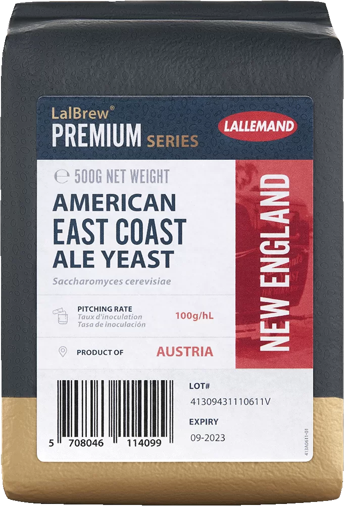 LalBrew New England™ is an ale strain selected specifically for its ability to produce a unique fruit forward ester profile desired in East Coast styles of beer. A typical fermentation with LalBrew New England™ will produce tropical and fruity esters, notably stone fruits like peach. Through expression of a β-glucosidase enzyme, LalBrew New England™ can promote hop biotransformation and accentuate hop flavor and aroma. LalBrew New England™ exhibits medium to high attenuation with medium flocculation, making it a perfect choice for East Coast style ales.